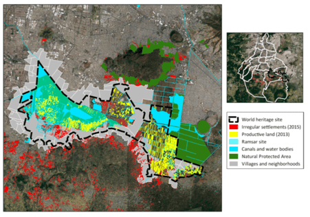 Water quality is a serious issue in Xochimilco, mainly due to the waste waters from Iztapala being fed into Xochimilco but also from illegal sewage dumping. Political action has been taken to protect the land by UNESCO who designated it a World Heritage Site in 1987. Despite this, around 25% of this protected land is urbanised (see below).